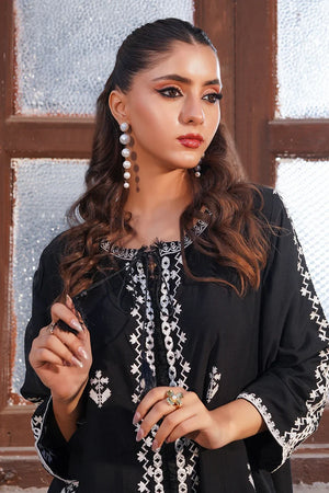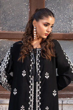 This article consists of a solid 2-piece set with an intricate embroidery detail on the shirt. The outfit consists of a long-length style shirt and fitted pants.