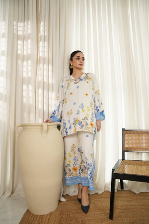 This 2 piece printed-colored co-ord set features luxurious and comfortable fabric and impeccable cuts given to every detail of the article, offering versatility and sophistication for any occasion.
